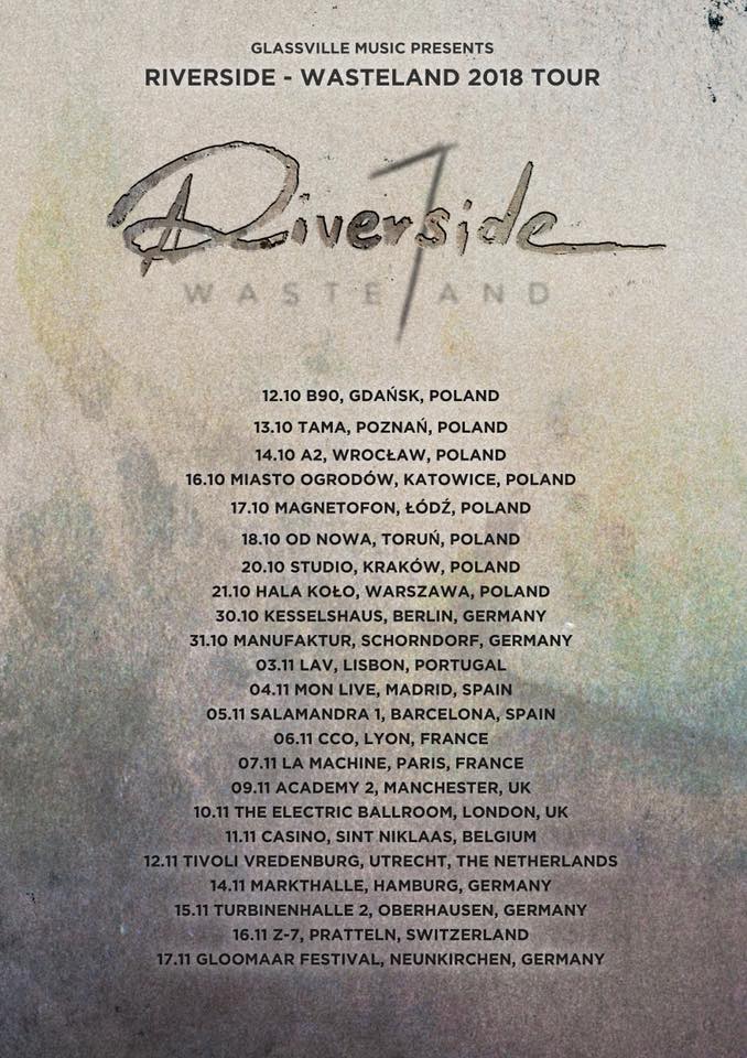 Miło nam ogłosić, że w tym roku wyruszamy na trasę koncertową „WASTELAND TOUR 2018” promującą najnowszy album Riverside zatytułowany „Wasteland”, który ukaże się pod koniec września tego roku.